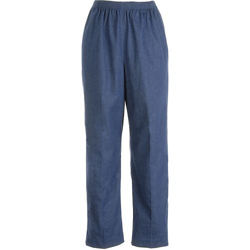 A classic looking style by Alfred Dunner that is comfortable and easyto wear! Pants features an all around elastic waistband, slash pockets, solid denim blue color, and is available in short & average lengths. Cotton. Spandex.You will not be disappointed with